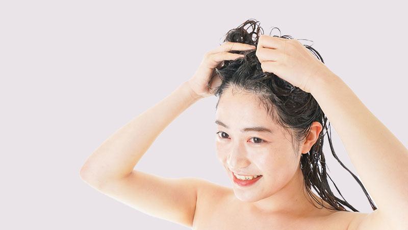 シャンプーは、手のひらに適量を取り、泡立ててから髪につけます。頭皮に直接つけると、余分な油分を取りすぎてしまうので、髪の毛につけるようにしましょう。