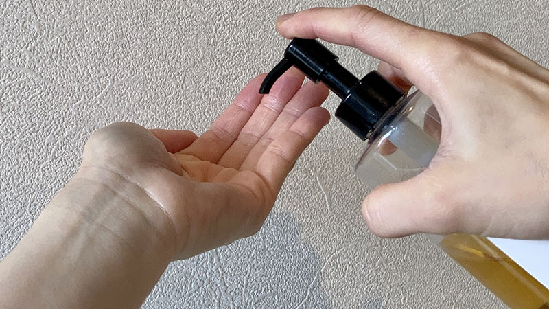 手のひらに適量のオイルを取り、頭皮にマッサージするように塗ります。頭皮全体に均等に塗るようにしましょう。